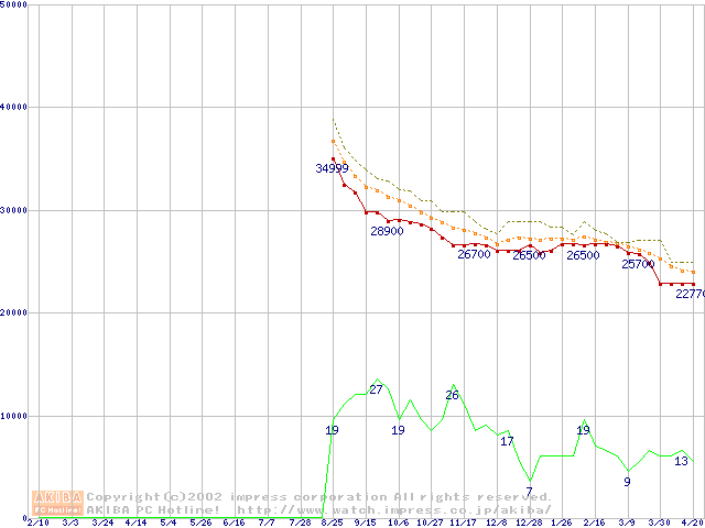 WD Caviar (7200rpm,UltraATA/100,2MB)の最安値推移