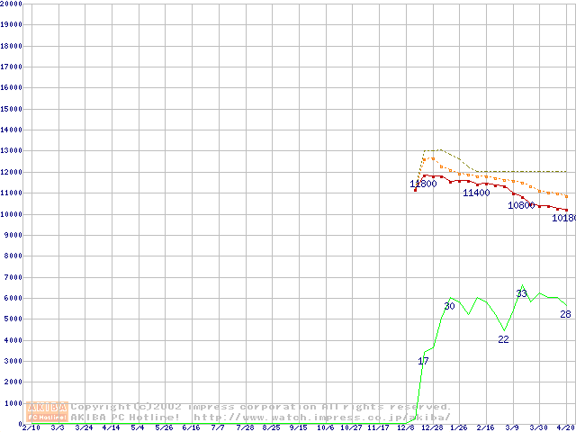 DiamondMax Plus D740X (7200rpm,UltraATA/133,40GB/Platter,流体軸受)の最安値推移