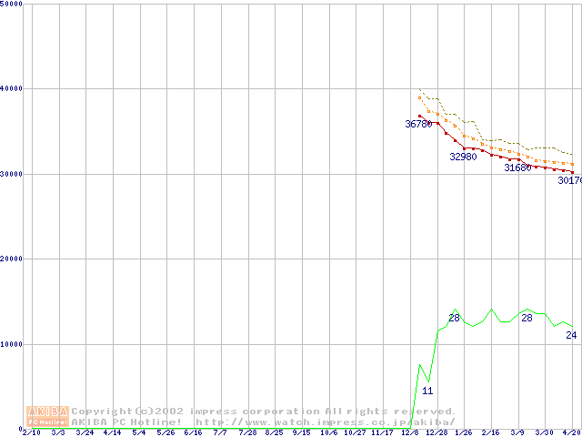 DiamondMax D540X (5400rpm,UltraATA/133,40GB/Platter)の最安値推移