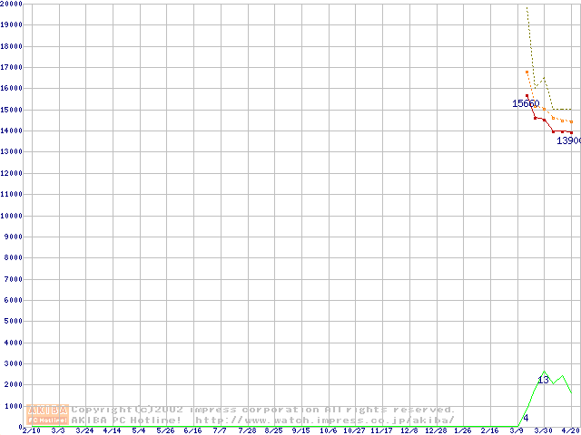 MHRシリーズ (9.5mm,4200rpm,UltraATA/100,2MB,20GB/プラッタ,流体軸受)の最安値推移