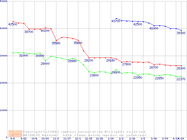 | [↑前グラフ]: | Socket 603 (micro-PGA,L2 256KB,Foster)の最安値推移 |