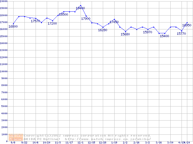 | [↓次グラフ]: | Slot 1 (SECC2,FSB 133MHz,L2 256KB)の最安値推移 |