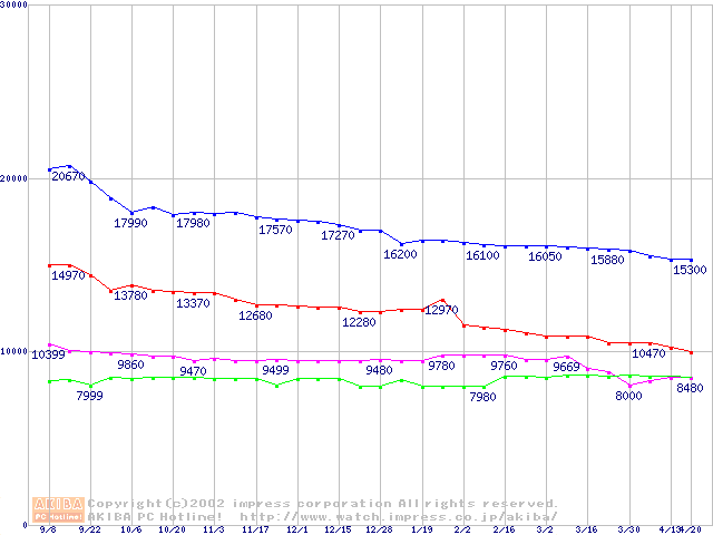 | [↓次グラフ]: | U5 (5400rpm,UltraATA/100 512KB)の最安値推移 |