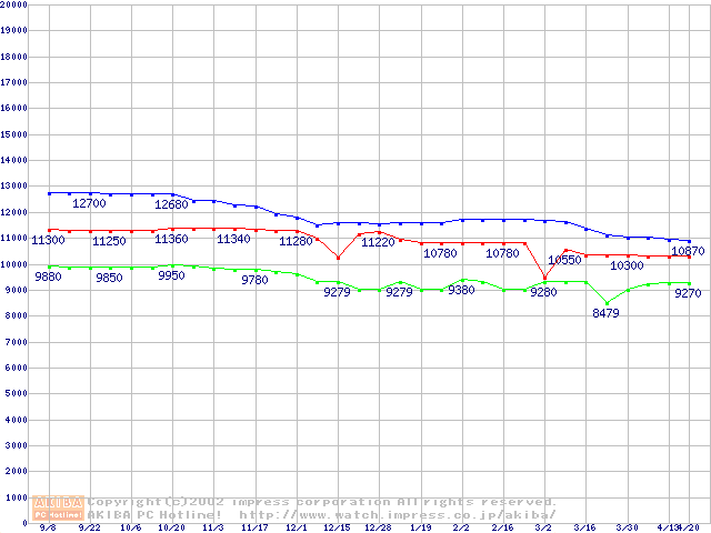| [↓次グラフ]: | WD Caviar (5400rpm,UltraATA/100)の最安値推移 |