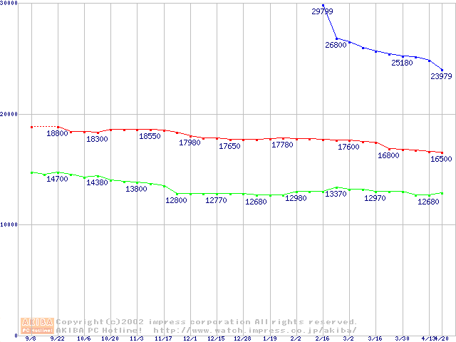 | [↓次グラフ]: | WD Protege (5400rpm,UltraATA/100)の最安値推移 |