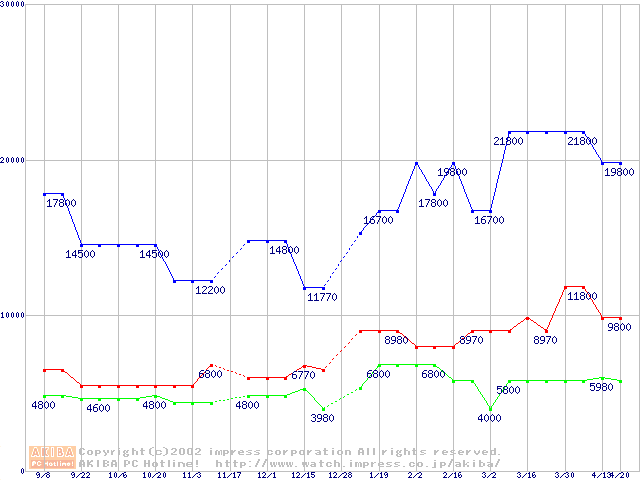 | [↓次グラフ]: | PC800 DRDRAM RIMMの最安値推移 |