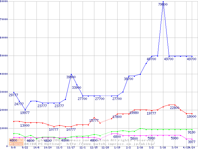 | [↓次グラフ]: | PC100 SDRAM DIMM CasLatency=2の最安値推移 |