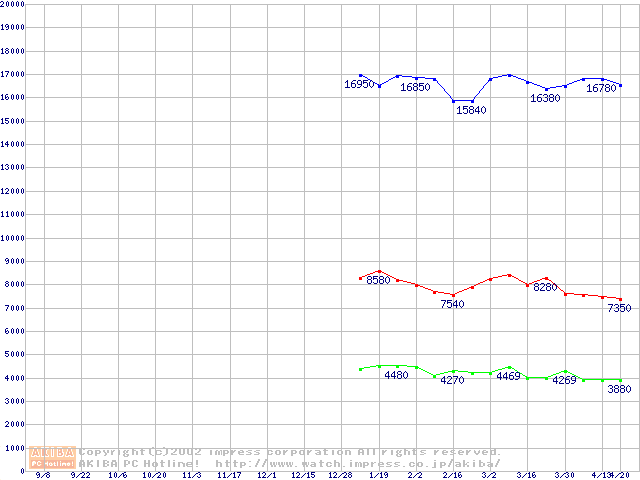 | [↓次グラフ]: | PC2700(DDR333) DDR SDRAM DIMMの最安値推移 |