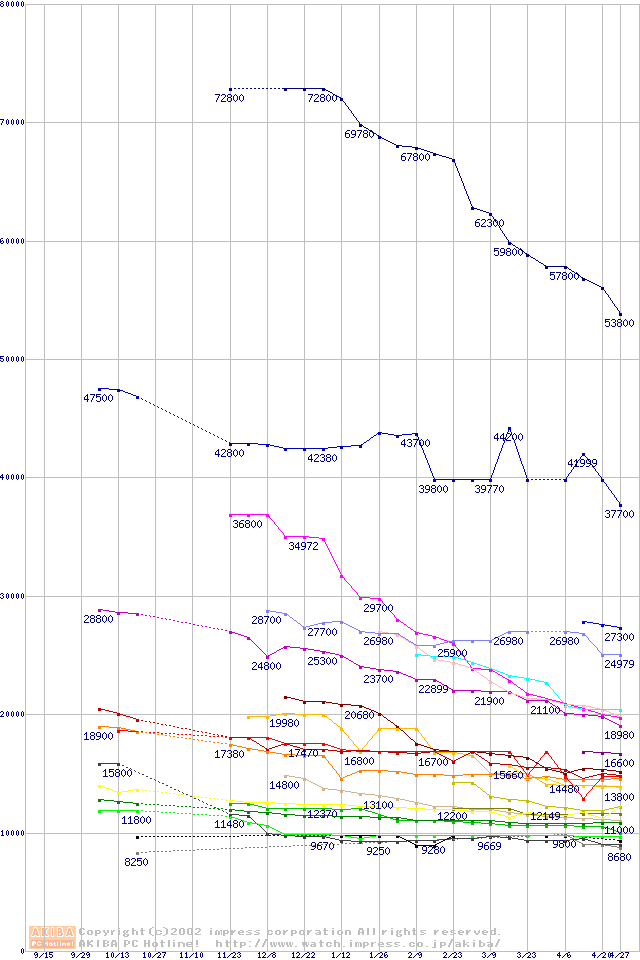 CPU主要製品の最安値推移