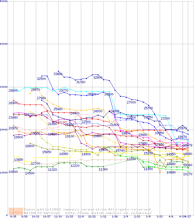 ※製品名をクリックすると個別のグラフを表示します ※点線部は販売店が確認できなかった、または調査データがないことを示します |