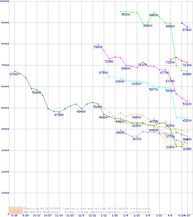 Socket A・FSB 266MHzの最安値推移