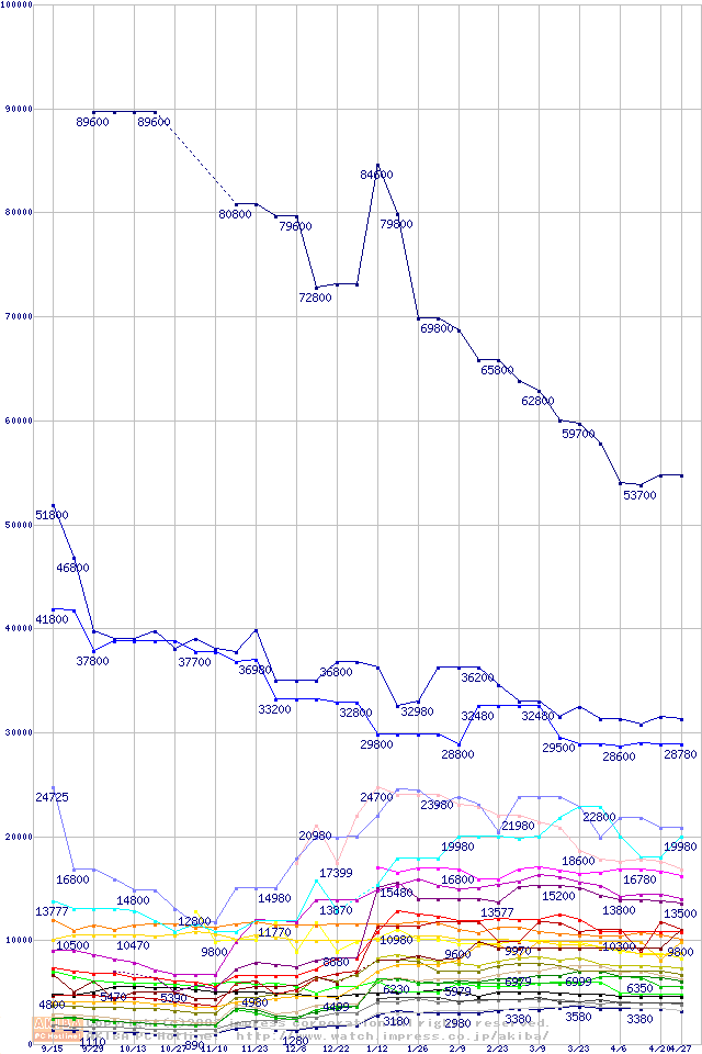 メモリ主要製品の最安値推移