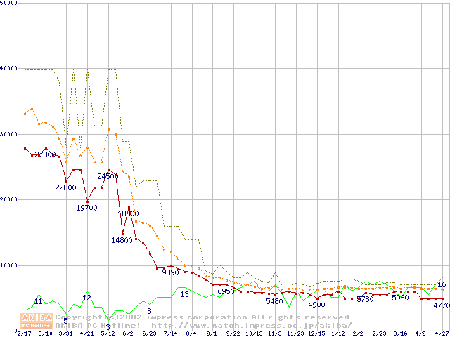 PC800 DRDRAM RIMM ECC対応の最安値推移