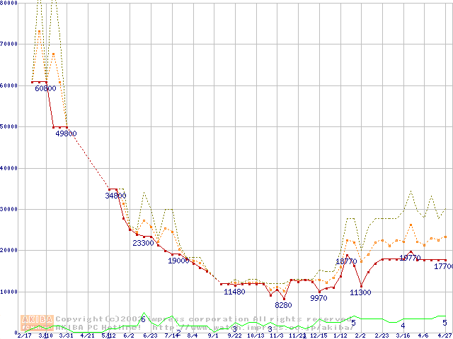 PC100 SDRAM DIMM CasLatency=2 ECC対応の最安値推移
