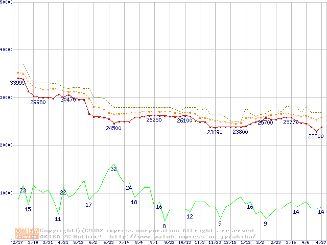 Slot 1・FSB 100MHzの最安値推移