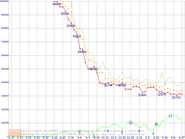 PC800 DRDRAM RIMM ECC対応の最安値推移