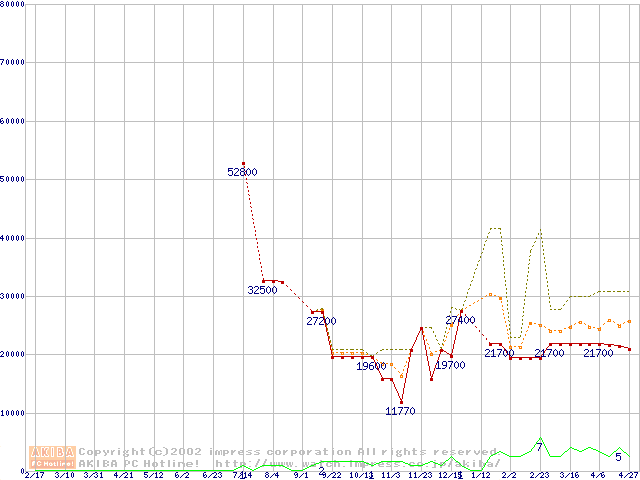 PC2100(DDR266) DDR SDRAM DIMM ECC対応の最安値推移