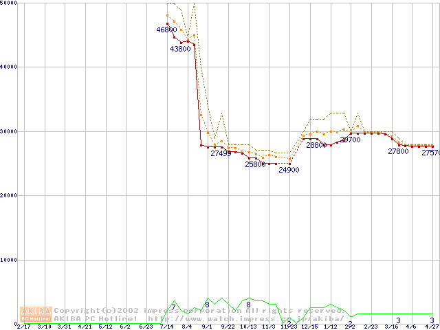 Socket 603 (micro-PGA,L2 256KB,Foster)の最安値推移