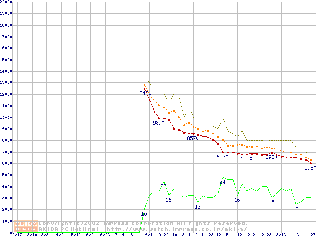 Socket A (Morgan,PGA,FSB 200MHz,L2 64KB)の最安値推移