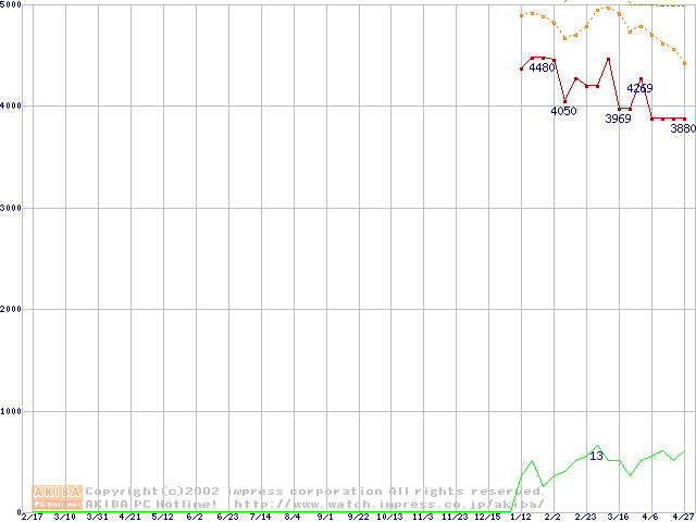 メモリ主要製品(最安値5千円未満)の最安値推移