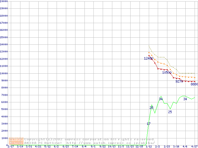 Celeron 1.10A GHz FC-PGA2 リテールパッケージの価格推移