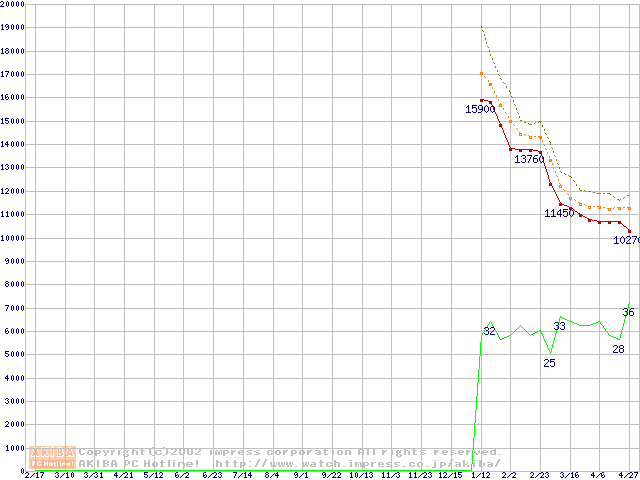 Celeron 1.30GHz FC-PGA2 リテールパッケージの価格推移