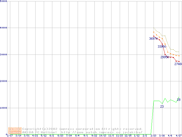 Athlon XP 2000+ (1.67GHz) リテールパッケージの価格推移