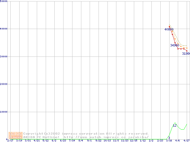 Socket A (Palomino,OPGA,FSB 266MHz,L2 256KB)の最安値推移