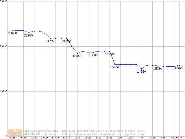 | [↑前グラフ]: | Socket 370 (FC-PGA2,FSB 133MHz,L2 256KB)の最安値推移 |