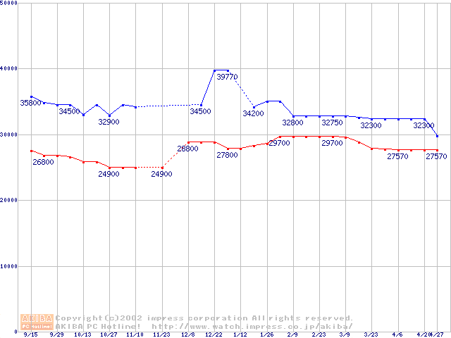| [↑前グラフ]: | Socket 603 (micro-PGA,L2 512KB,Hyper-Threading,Prestonia)の最安値推移 |