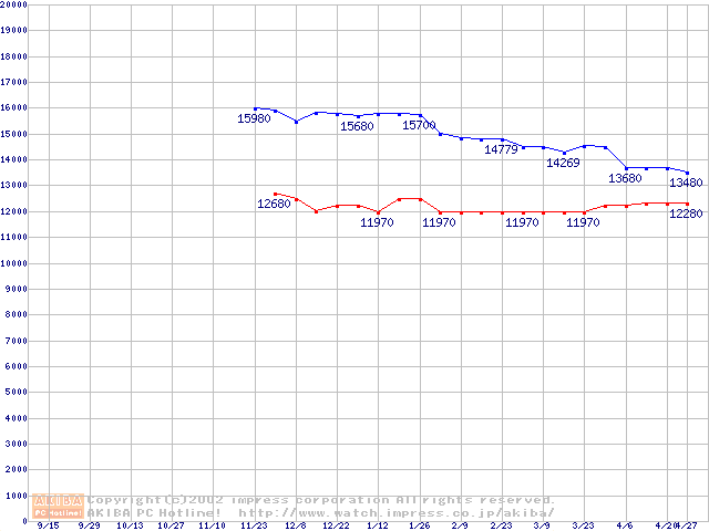 | [↑前グラフ]: | SpinPoint P40 (7200rpm,UltraATA/100,2MB)の最安値推移 |