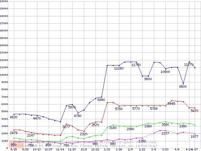 | [↓次グラフ]: | PC133 SDRAM DIMM CasLatency=2の最安値推移 |