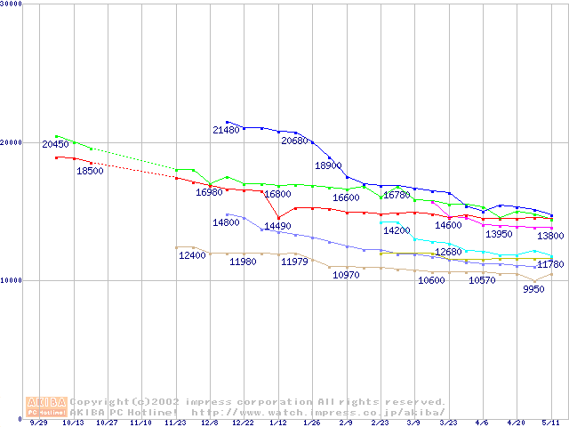 | [↓次グラフ]: | 2.5インチHDD主要製品(最安値1万5千円~2万円未満)の最安値推移 |