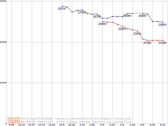 | [↓次グラフ]: | 2.5インチHDD主要製品(最安値3万円以上)の最安値推移 |