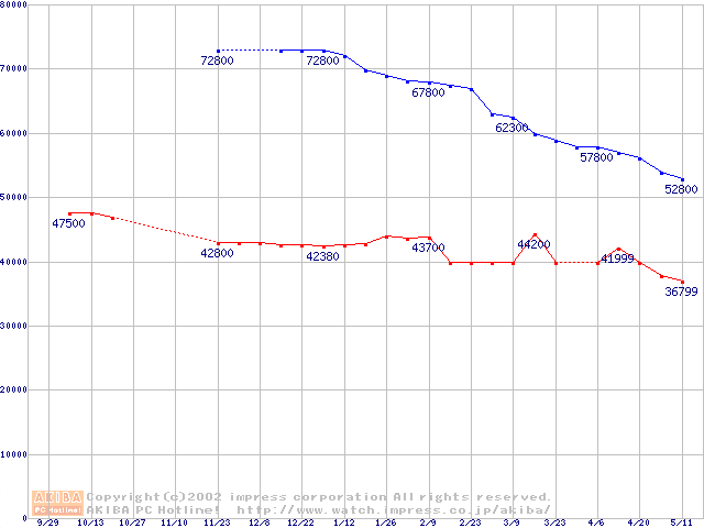 | [↓次グラフ]: | 2.5インチHDD 10GB未満(9.5mm厚)の最安値推移 |