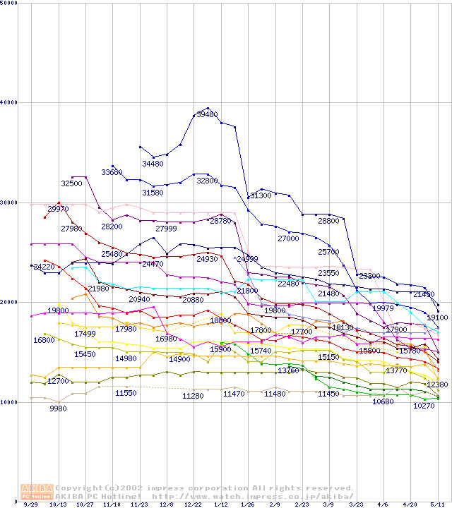 CPU主要製品(最安値2万円~3万円未満)の最安値推移