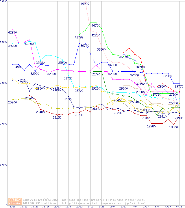 CPU主要製品(最安値3万円以上)の最安値推移