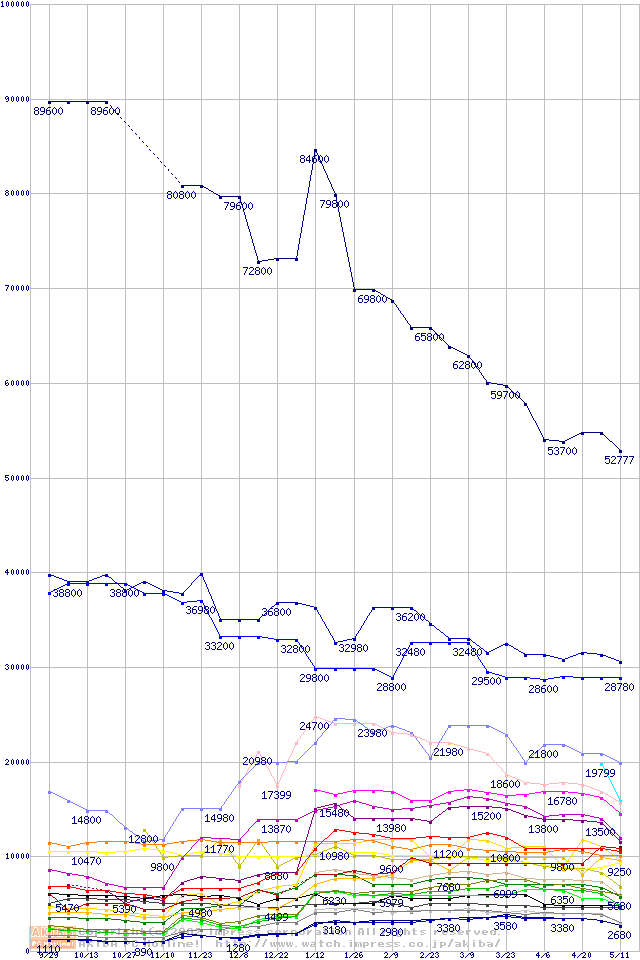 メモリ主要製品の最安値推移