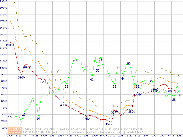 PC133 SDRAM DIMM CasLatency=2の最安値推移