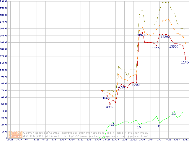 PC133 SDRAM DIMM CasLatency=2の最安値推移