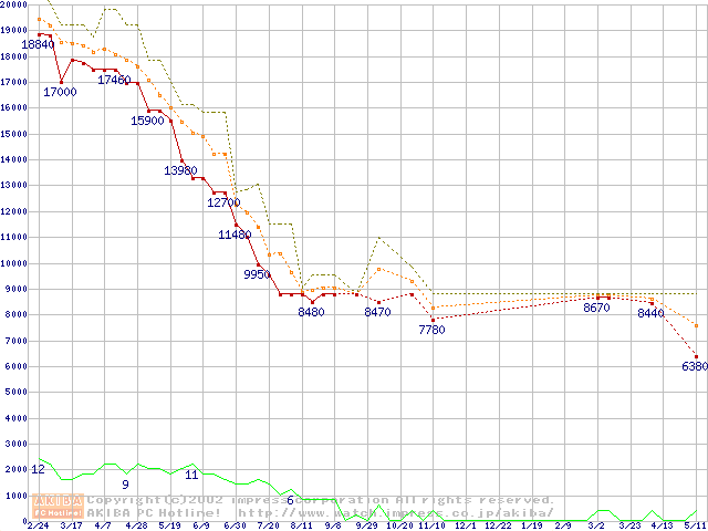 Socket A (Thunderbird,PGA,FSB 200MHz,L2 256KB)の最安値推移