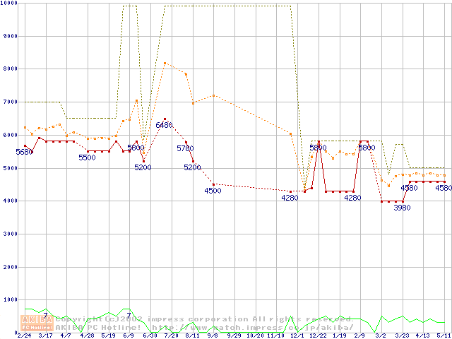 Socket 370・FSB 66MHzの最安値推移
