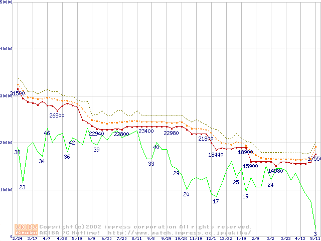 Socket 370・FSB 133MHzの最安値推移