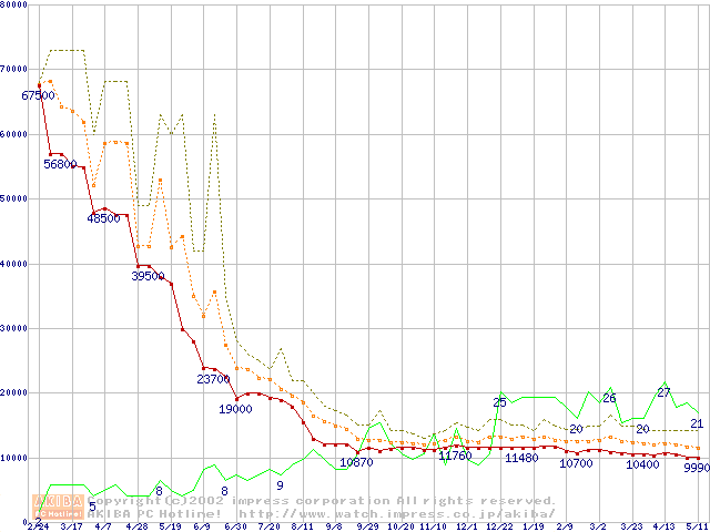 PC800 DRDRAM RIMM ECC対応の最安値推移
