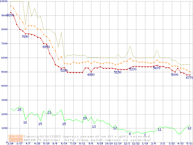 Socket A (Spitfire,PGA,FSB 200MHz,L2 64KB)の最安値推移