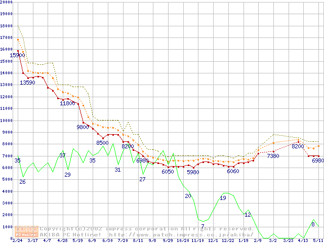 Celeron 800MHz FC-PGA リテールパッケージの価格推移