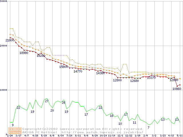 WD Caviar (5400rpm,UltraATA/100)の最安値推移