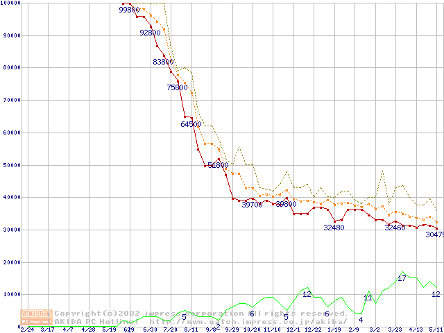 PC800 DRDRAM 512MB ECC対応の価格推移