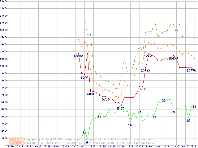 メモリ主要製品の最安値推移