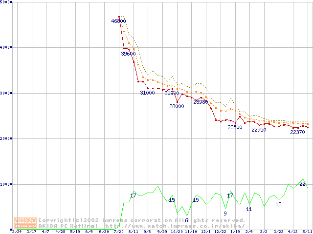 Pentium III-S 1.13GHz FC-PGA2 リテールパッケージの価格推移